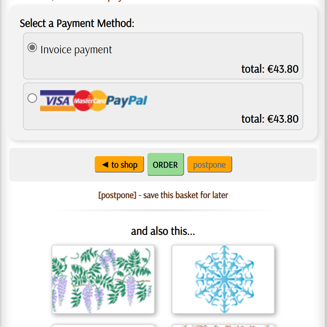 Jeśli jesteś zalogowany przy użyciu swojego adresu e-mail i hasła, w koszyku zobaczysz dodatkowy przycisk [odłóż] obok przycisku [ZAMÓW]. Jeśli naciśniesz ten przycisk, cała zawartość Twojego koszyka zostanie przeniesiona do listy "Koszyki odłożone", a bieżący koszyk zostanie wyczyszczony.